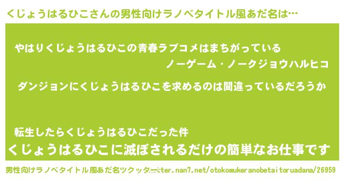 | 意味不明あだ名 | 『とにかく怪しいくじょうはるひこ』 |