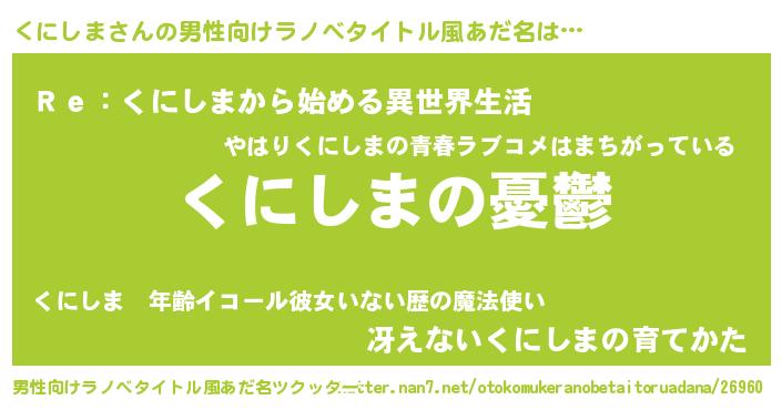 くにしまさんの男性向けラノベタイトル風あだ名をツクッター!
