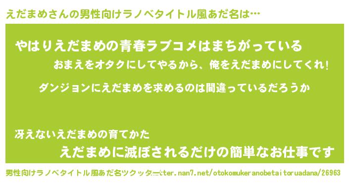 | 女子向けラノベタイトル風あだ名 | 『えだまめの卵を拾いまして』 |