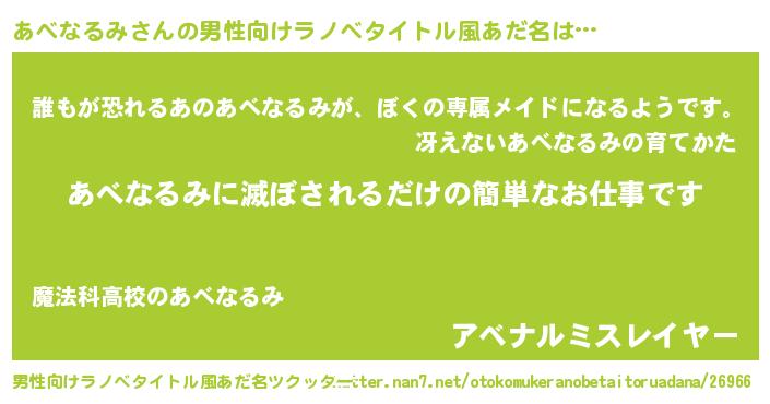 | ヘコむあだ名 | 『あべなるみ(遠い目)』『あべっ子』 |