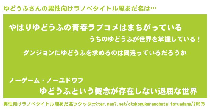 | 女子向けラノベタイトル風あだ名 | 『ゆどうふは平凡を望む』 |