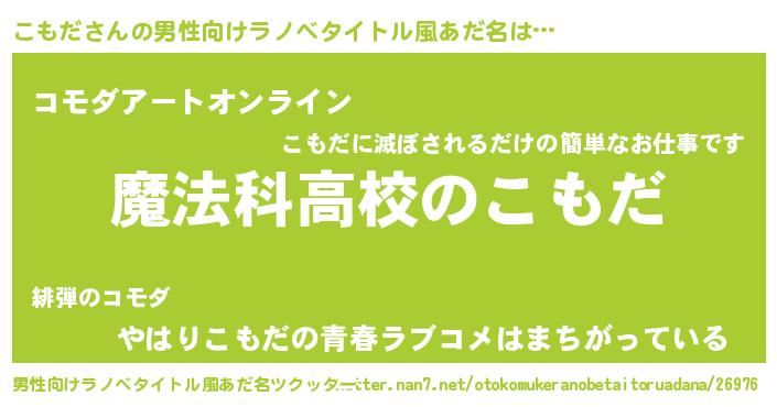 | 女子向けラノベタイトル風あだ名 | 『こもだなんてお断りですっ。』 |