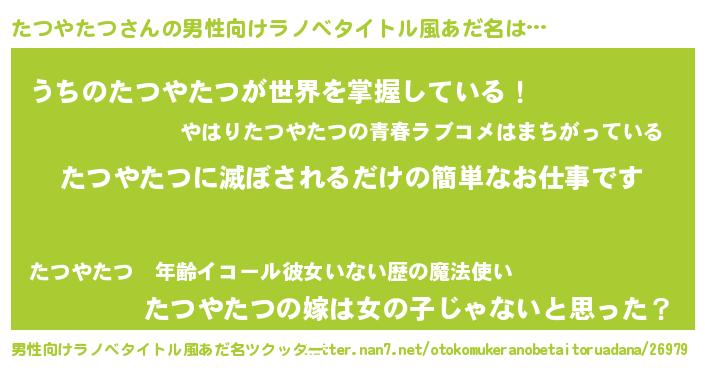 | 意味不明あだ名 | 『とにかく怪しいたつやたつ』 |
