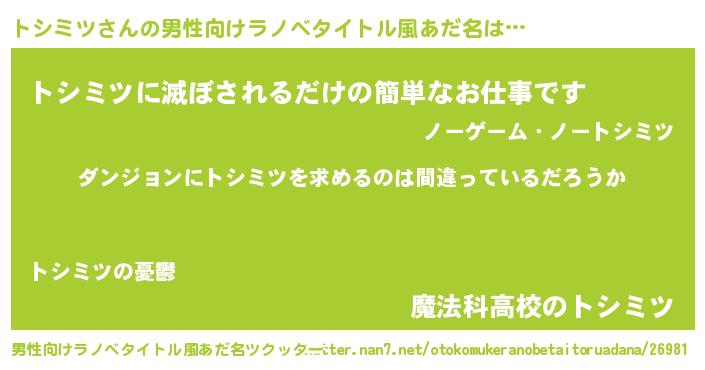 | ヒーロー風カッコイイあだ名 | 『魔戒騎士トシ』『サイバー戦士トシミツ』 |