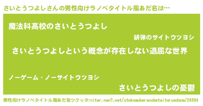 | 意味不明あだ名 | 『永久保存さいとうつよし』 |