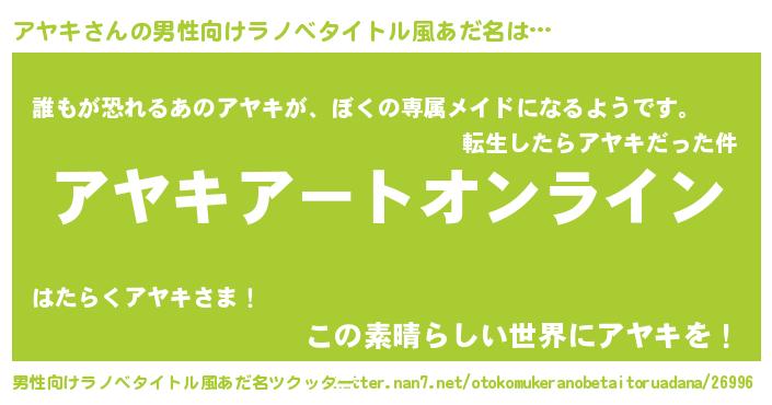 | 女子向けラノベタイトル風あだ名 | 『誰かこのアヤキを説明してください! ~契約から始まるウェディング~』 |
