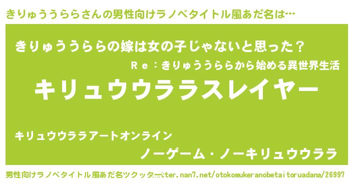 | 胡散臭い通販商品みたいなあだ名 | 『信頼と実績のサプリメント…その名も「きりゅううらら」』 |