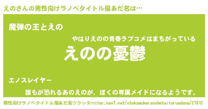 | 女子向けラノベタイトル風あだ名 | 『(仮)えののやんごとなき事情』 |