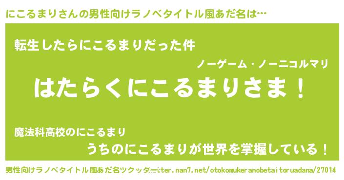 | 女子向けラノベタイトル風あだ名 | 『首の姫と首なしにこるまり』 |
