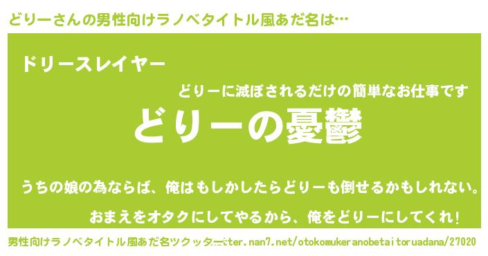 | ヘコむあだ名 | 『どりもー』『牛乳』『どりー(爆)』 |