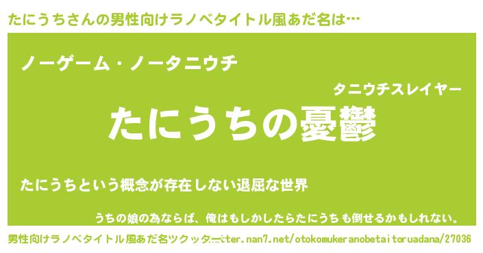 | 女子向けラノベタイトル風あだ名 | 『(仮)たにうちのやんごとなき事情』 |