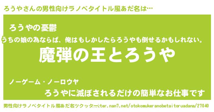 | 意味不明あだ名 | 『住所不定無職ろうや(2歳)』 |