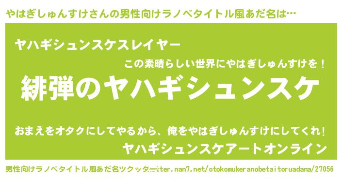 | ヒーロー風カッコイイあだ名 | 『スーパーヤハギシュンスケ』 |