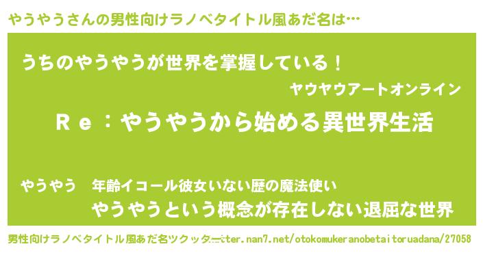 | ヘコむあだ名 | 『やうやう(笑)』『やうにー』 |