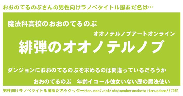 | 意味不明あだ名 | 『自称おおのてるのぶ』 |