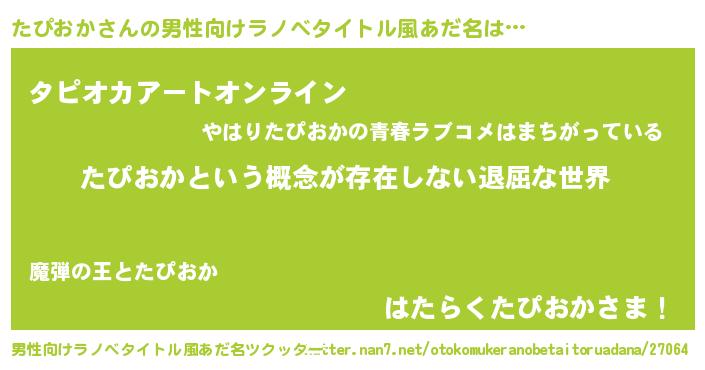 | 胡散臭い通販商品みたいなあだ名 | 『絶対に幸福をもたらす健康食品…その名も「たぴおか」』 |