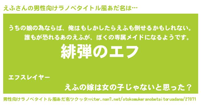 | ヒーロー風カッコイイあだ名 | 『ウルトラえふマン』『幻影騎士エフ』 |