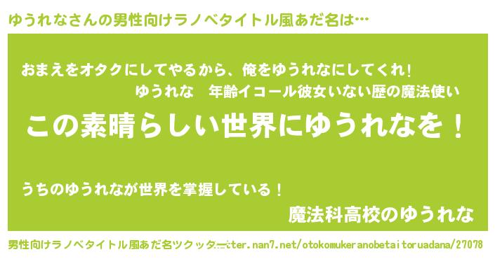 | 意味不明あだ名 | 『住所不定無職ゆうれな(77歳)』 |