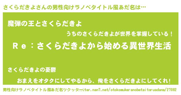 | 女子向けラノベタイトル風あだ名 | 『闇のさくらだきよ』 |