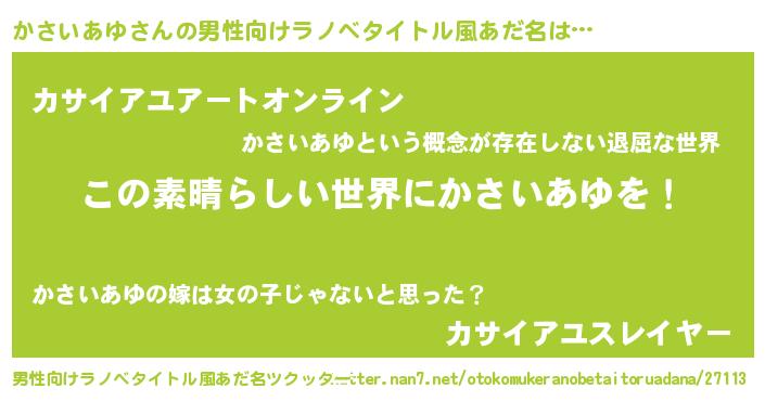| 意味不明あだ名 | 『住所不定無職かさいあゆ(8歳)』 |