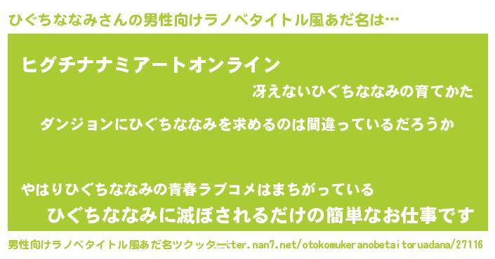 | 女子向けラノベタイトル風あだ名 | 『ひぐちななみは平凡を望む』 |