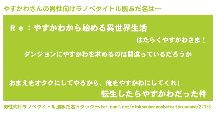 | 胡散臭い通販商品みたいなあだ名 | 『信頼と実績のネックレス…その名も「やすかわ」』 |