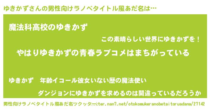 | ファンタジー風あだ名 | 『エターナルユキカズー』『ゼユキトゥ』 |