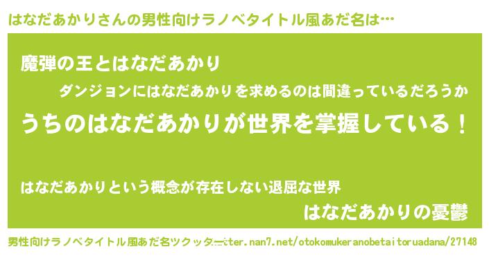 | 意味不明あだ名 | 『住所不定無職はなだあかり(68歳)』 |