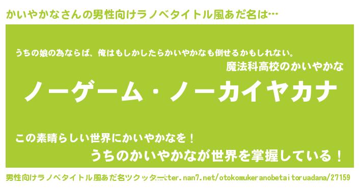 | ヘコむあだ名 | 『酢こんぶ』『かいやかな(笑)』 |
