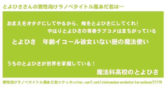 | 女子向けラノベタイトル風あだ名 | 『とよひさの玉の輿計画!』 |