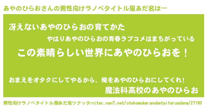 | 意味不明あだ名 | 『住所不定無職あやのひらお(5歳)』 |