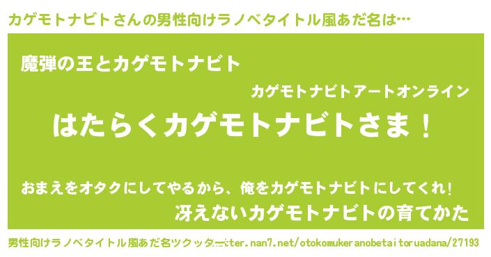 | ヒーロー風カッコイイあだ名 | 『仮面カゲダー』『ネオカゲモトナビト』 |