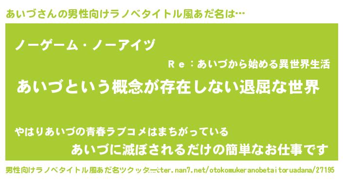 あいづさんの男性向けラノベタイトル風あだ名をツクッター!