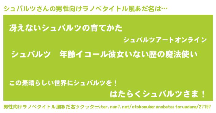 女子向けラノベタイトル風あだ名 | 『シュバルツの玉の輿計画!』 |