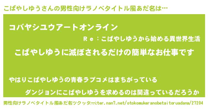 | 女子向けラノベタイトル風あだ名 | 『横柄こばやしゆうと宰相陛下』 |
