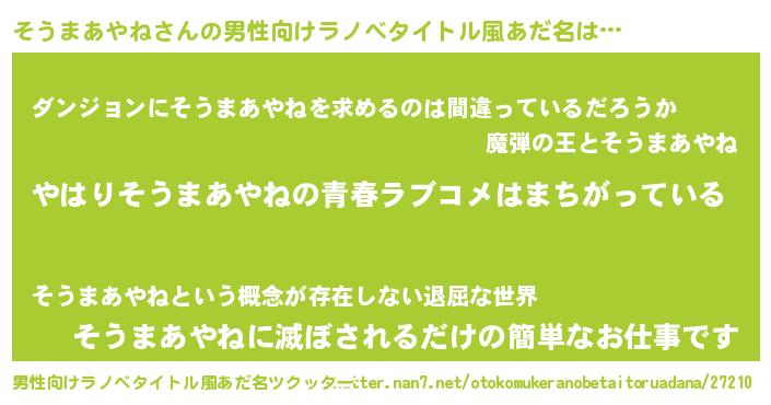 | 女子向けラノベタイトル風あだ名 | 『そうまあやね伯爵の花嫁』 |