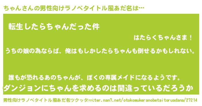 | 女子向けラノベタイトル風あだ名 | 『ちゃんの婚約者』 |