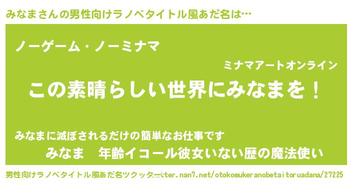 | ヘコむあだ名 | 『みなにゅー』『なまこ酢』『みなを』 |