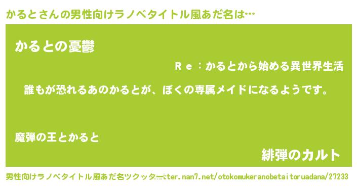 | ヘコむあだ名 | 『かると(笑)』『かるにゅー』 |