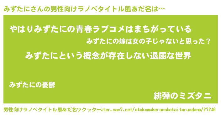 | ヘコむあだ名 | 『みずたに(笑)』『つくし』『みずお』 |