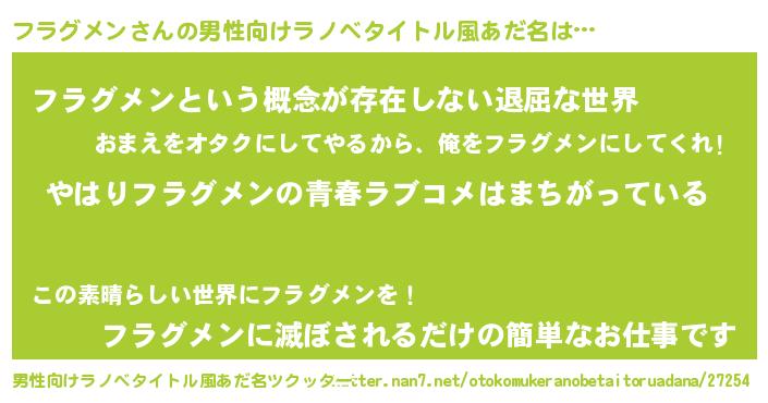 | 女子向けラノベタイトル風あだ名 | 『フラグメンの雑貨屋さん』 |