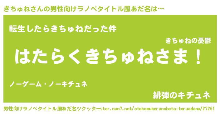 | 胡散臭い通販商品みたいなあだ名 | 『必ず成功する霊験あらたかなお札…その名も「きちゅね」』 |