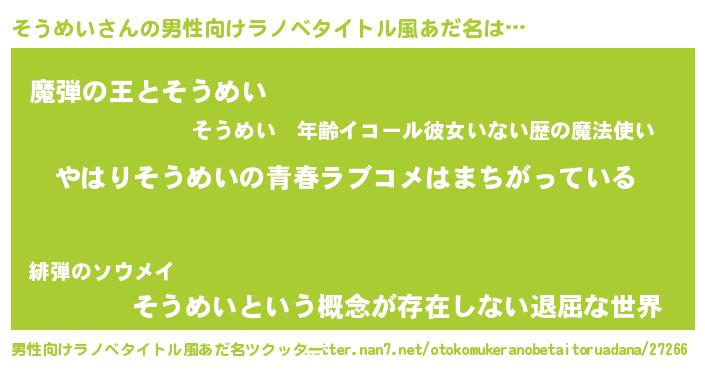 | ポケモン風あだ名 | 『ソウメダネ』『ソーウイ』 |
