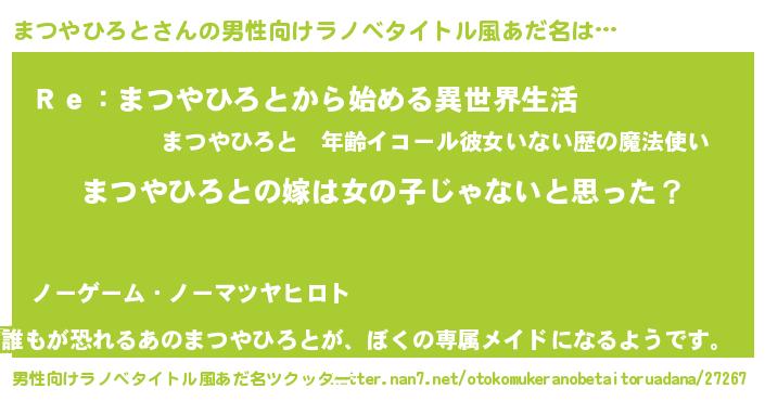 | 女子向けラノベタイトル風あだ名 | 『まつやひろと様がみてる』 |