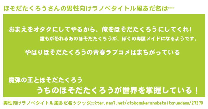 | 意味不明あだ名 | 『ほそだたくろうフォーエバー』 |