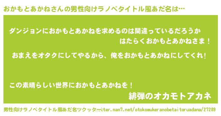 | 意味不明あだ名 | 『眠気覚ましガムおかもとあかね味』 |