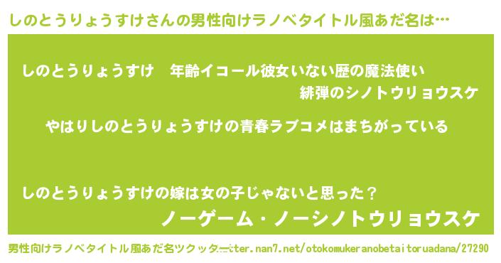 | 女子向けラノベタイトル風あだ名 | 『しのとうりょうすけの雑貨屋さん』 |