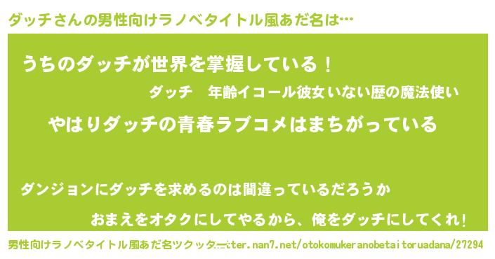 | ヒーロー風カッコイイあだ名 | 『ウルトラダッチマン』『黄金騎士ダッ』 |