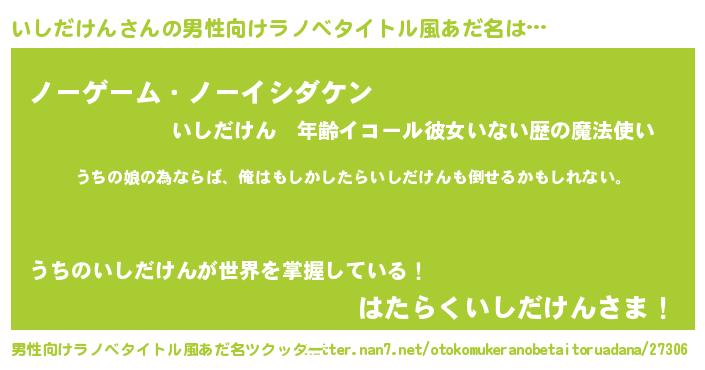 | 女子向けラノベタイトル風あだ名 | 『いしだけんの婚約者』 |