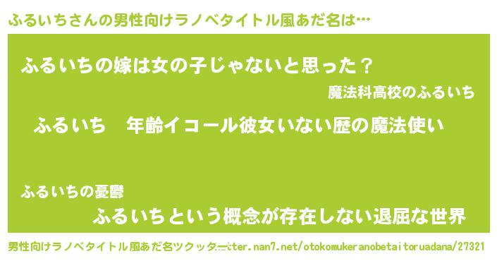 | 意味不明あだ名 | 『つくし科ふるいち属』『自称ふるいち』 |